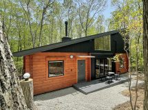 玄関先と薪ストーブを大谷石が見守る、貸別荘として利用されます。